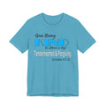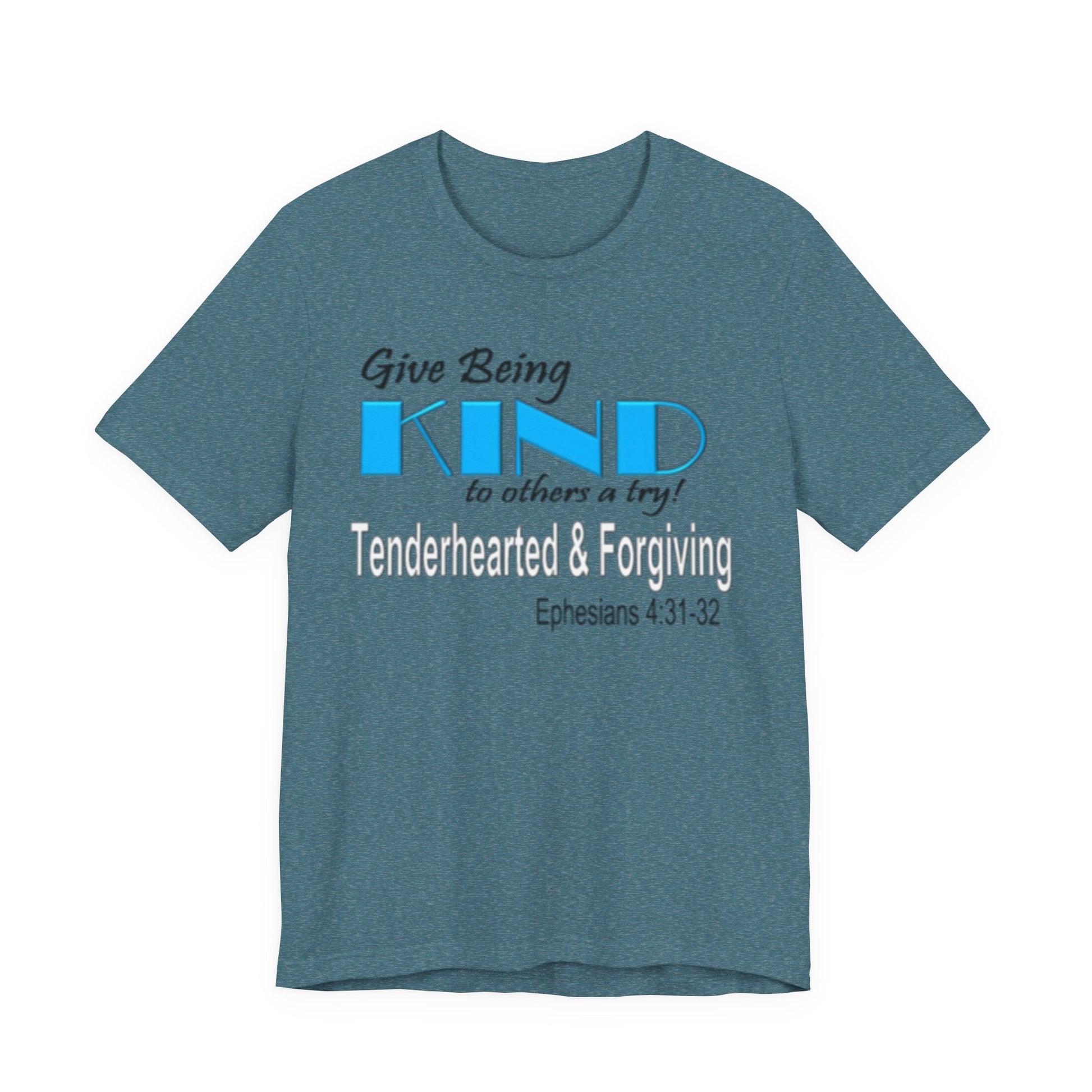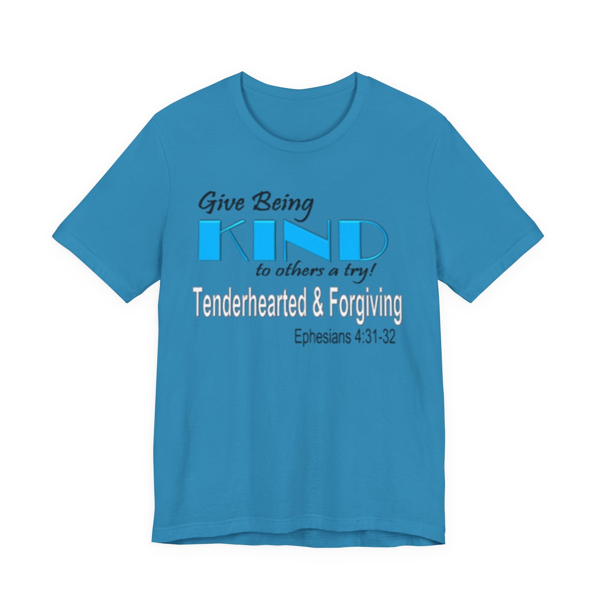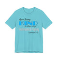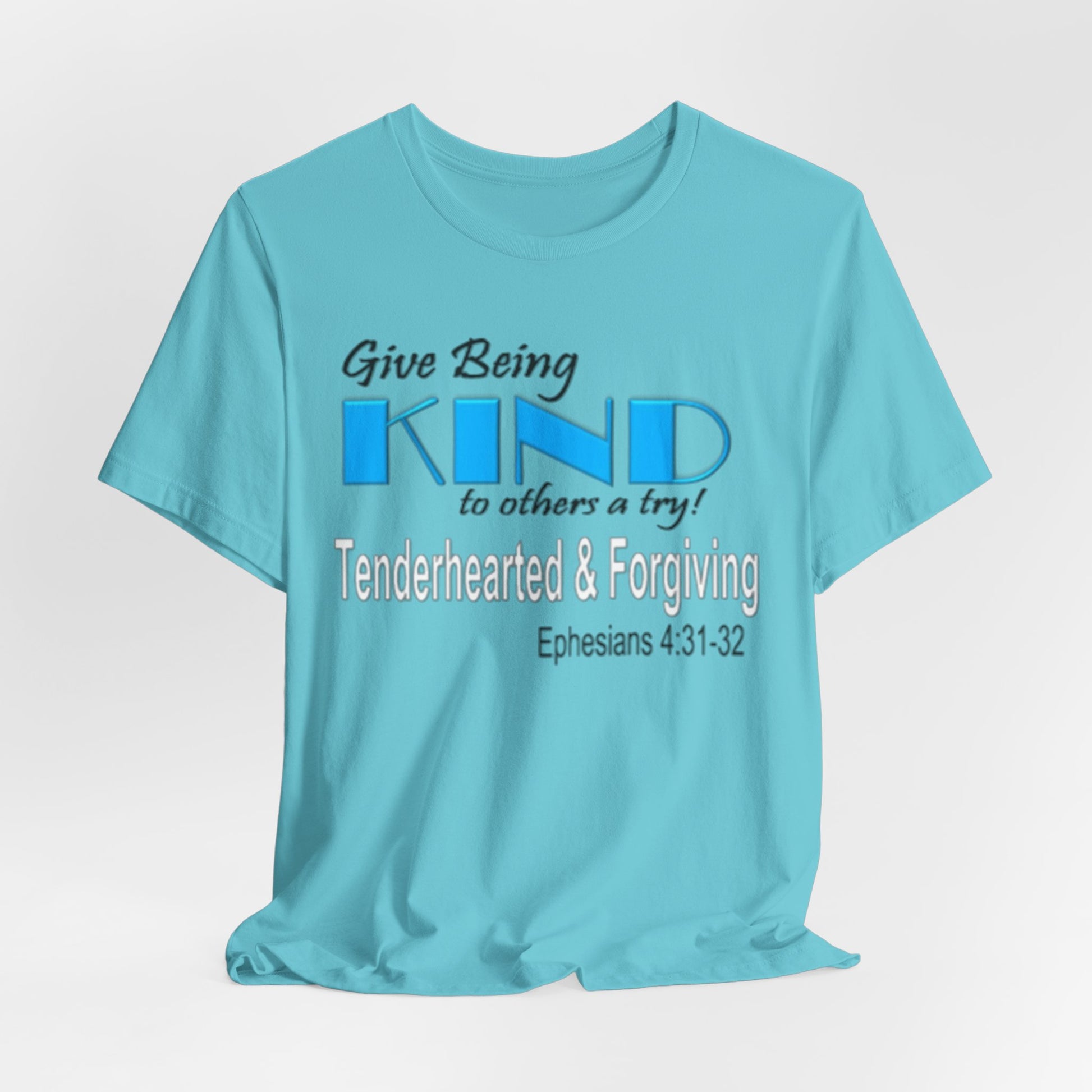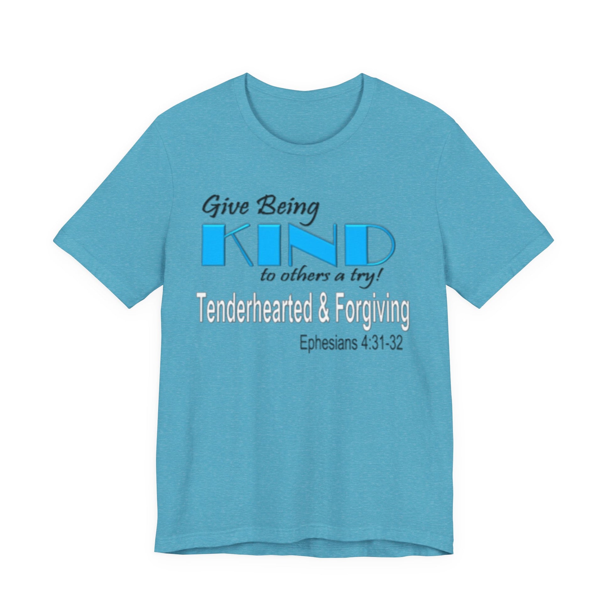 Soft, breathable, and gently styled — this lightweight jersey tee carries a quiet, faith-forward message that speaks in kindness. The front print layers a bold, blue block word “KIND” with softer script and scripture reference, creating a calm, hopeful look that settles easily into everyday life. Wear it to church gatherings, volunteer days, or casual meetups; it’s meant to feel like something you reach for when you want your clothing to reflect patience and grace. The crew neck and retail fit keep the silhouette neat for layering under a sweater or wearing on its own. Thoughtfully made details—tear-away label, ribbed collar, and side seams—make it comfortable for long days of service, study, or Sunday fellowship.