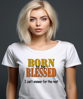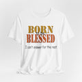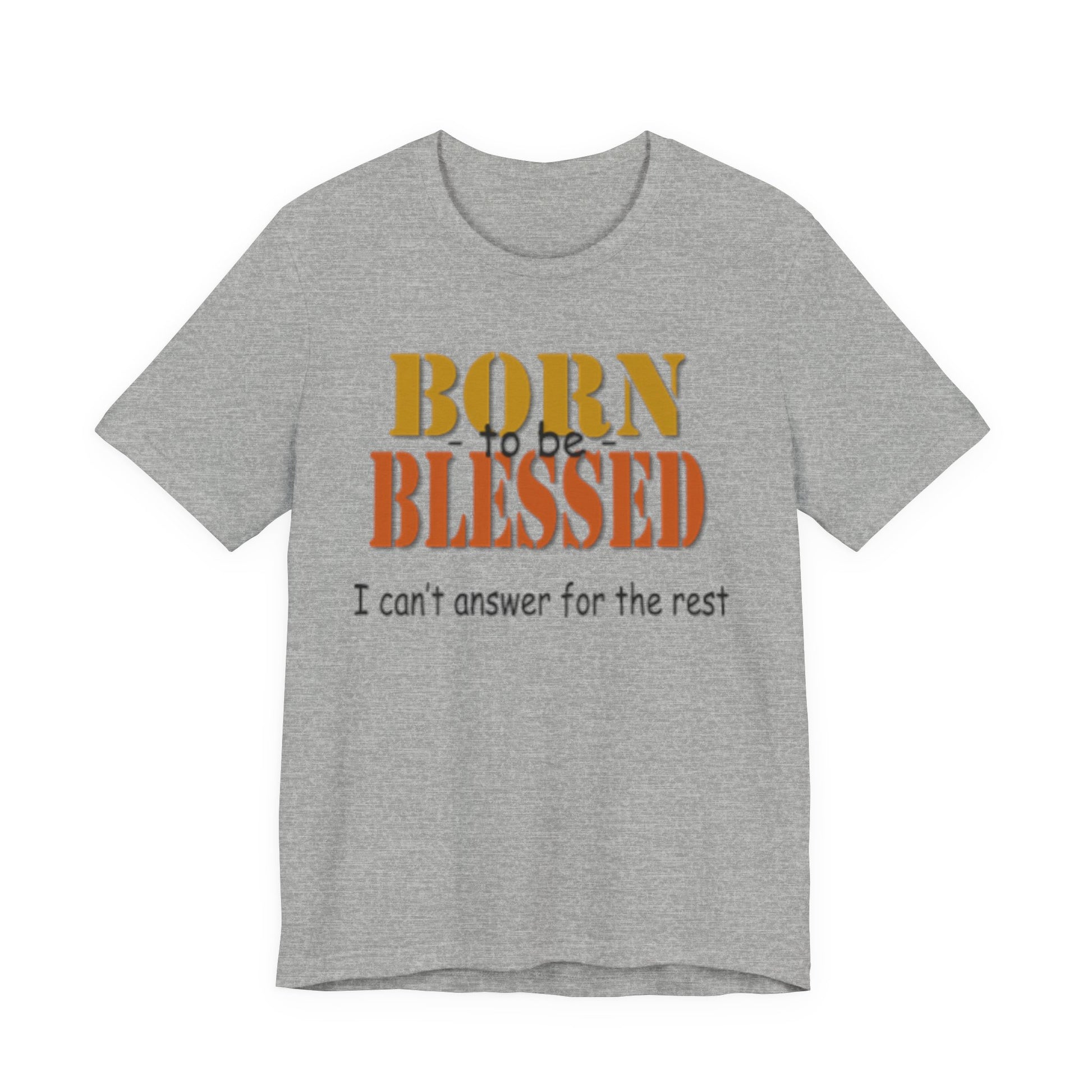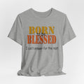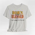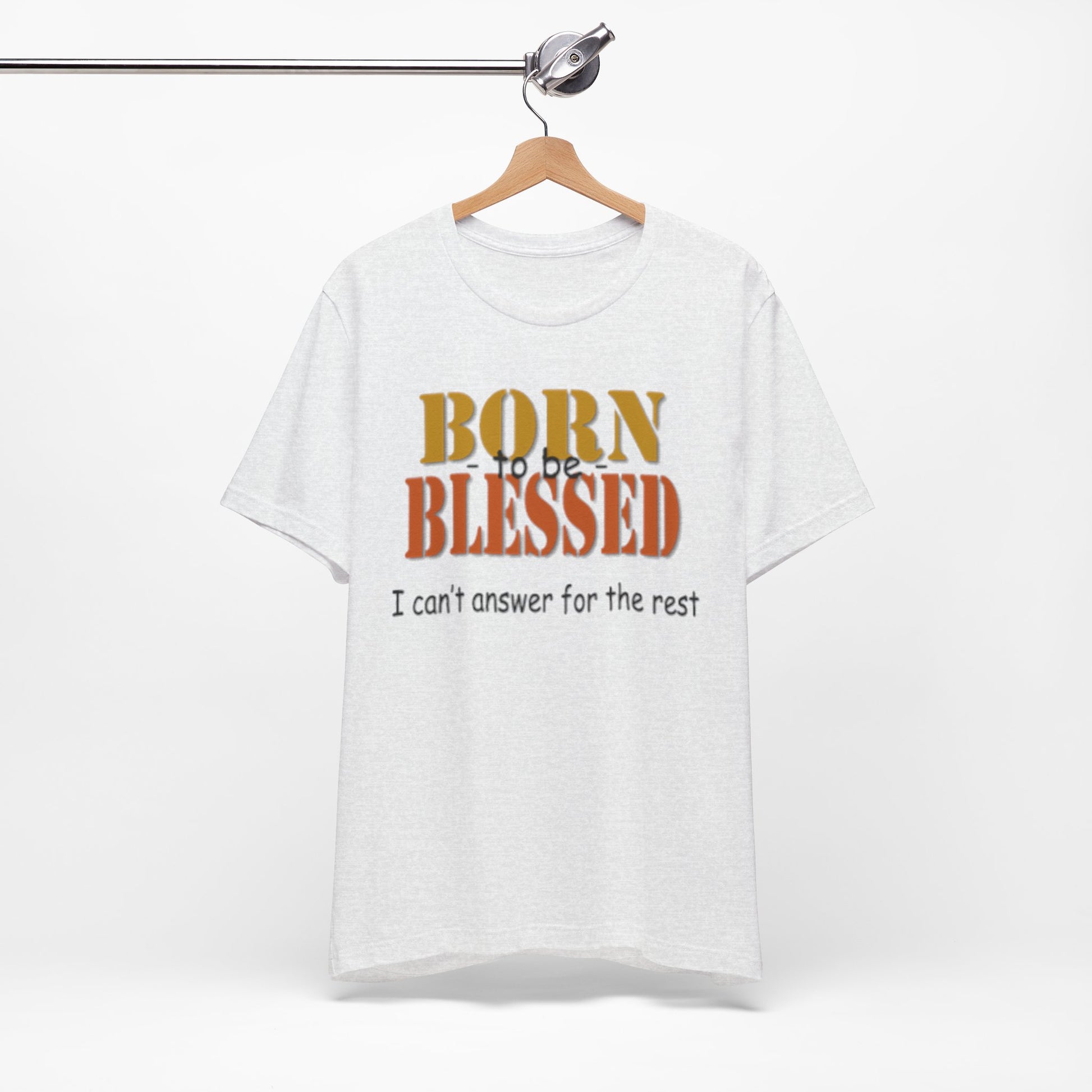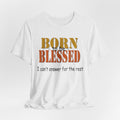 Soft, breathable cotton meets quiet confidence. This lightweight crew tee carries a warm, vintage-inspired graphic that reads “BORN to be BLESSED” with a smaller line below: “I can’t answer for the rest.” It sits close to the body without feeling tight, the ribbed collar and side seams keeping the shape wash after wash. Wear it on slow Sunday mornings, casual meetups, or while running errands to share a gentle, personal message without saying a word. The tear-away label prevents irritation, and responsible manufacturing means you can feel good about wearing it. A relaxed retail fit that layers easily under jackets or pairs with jeans and sneakers for an effortless, lived-in look.