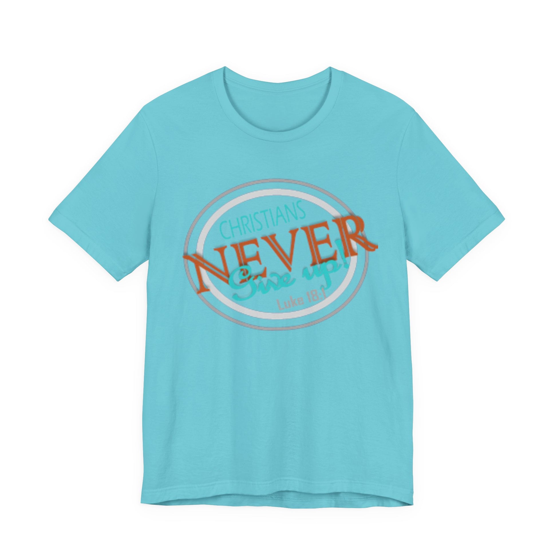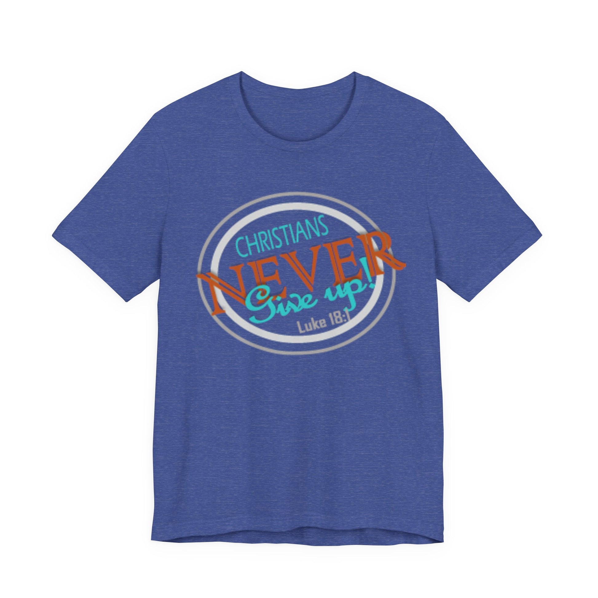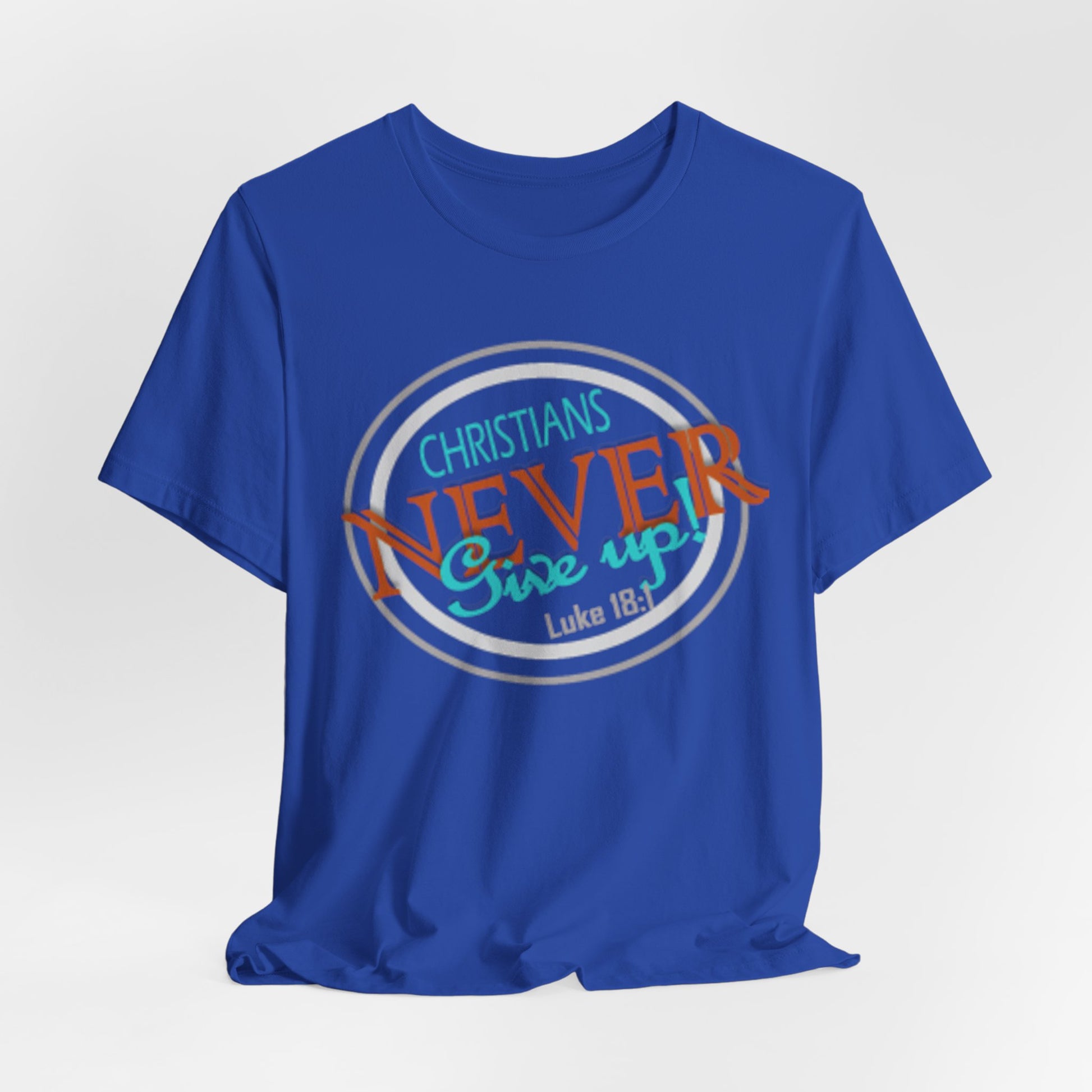 This lightweight crew-neck tee carries a faith-forward message with an easygoing, lived-in vibe. The soft Airlume combed and ring-spun cotton feels airy against the skin while the retail cut keeps the silhouette neat — great for layering under a cardigan or wearing solo on warm mornings. The front graphic blends script and bold lettering to read “Christians NEVER Give up,” evoking quiet resolve and gentle encouragement rather than loud proclamation. Subtle color contrasts in the print give it a vintage, slightly weathered look that feels personal and wearable every day. Finished with a ribbed knit collar, shoulder tape for stability, and a tear-away label for comfort, this tee feels thoughtful from fabric to print. It’s made with responsible manufacturing practices and REACH-certified materials, so it fits into a mindful wardrobe as comfortably as it fits into moments of quiet faith or community fellowship.