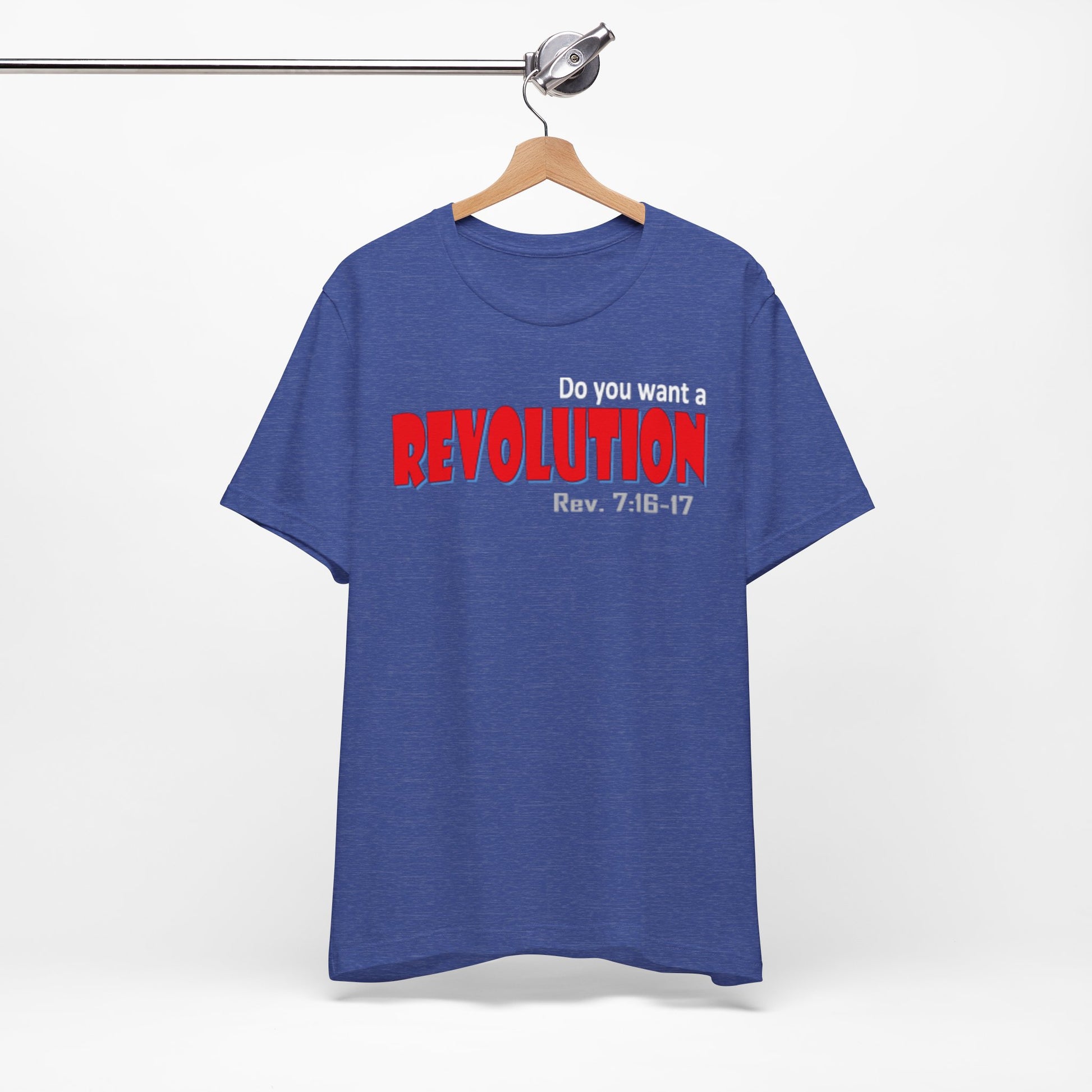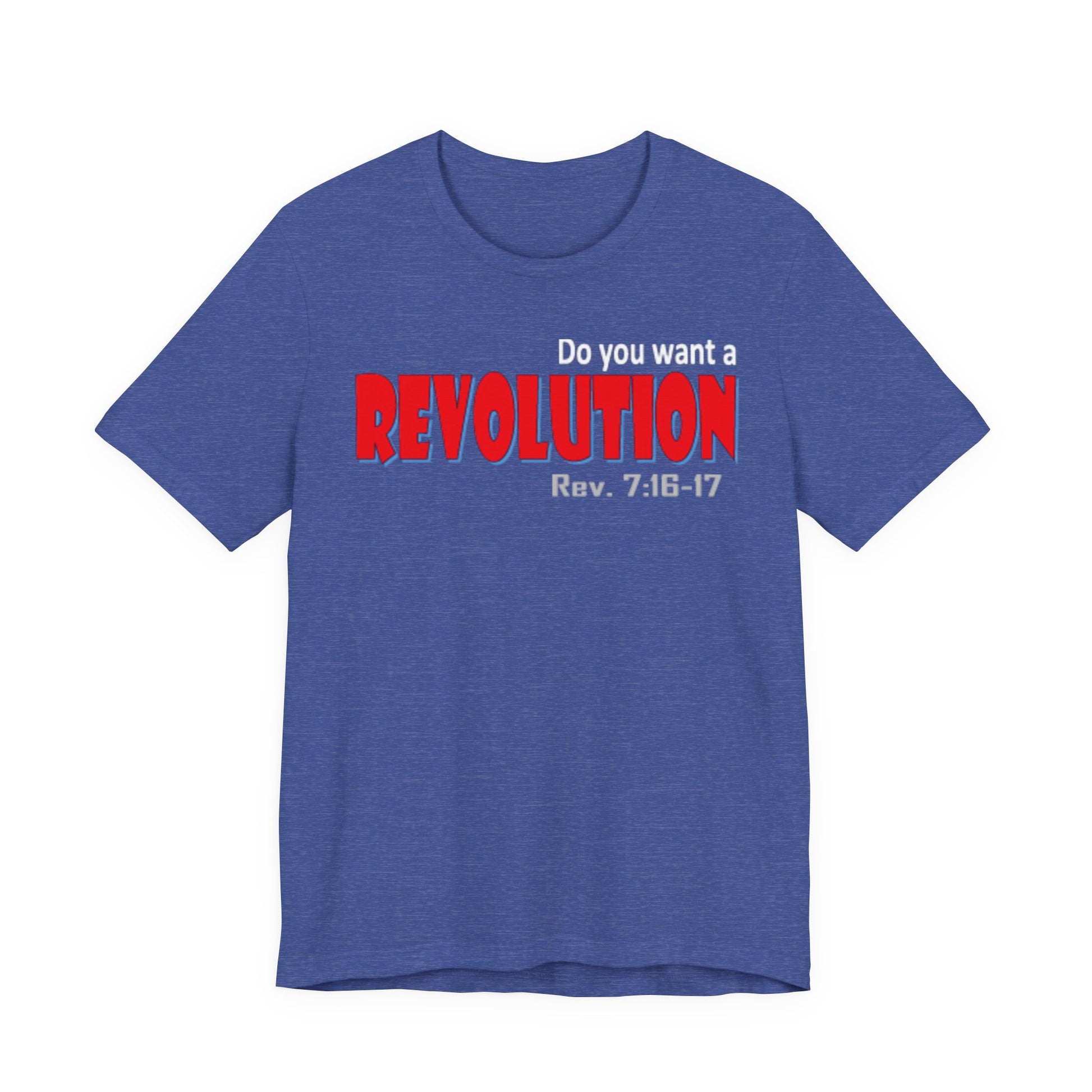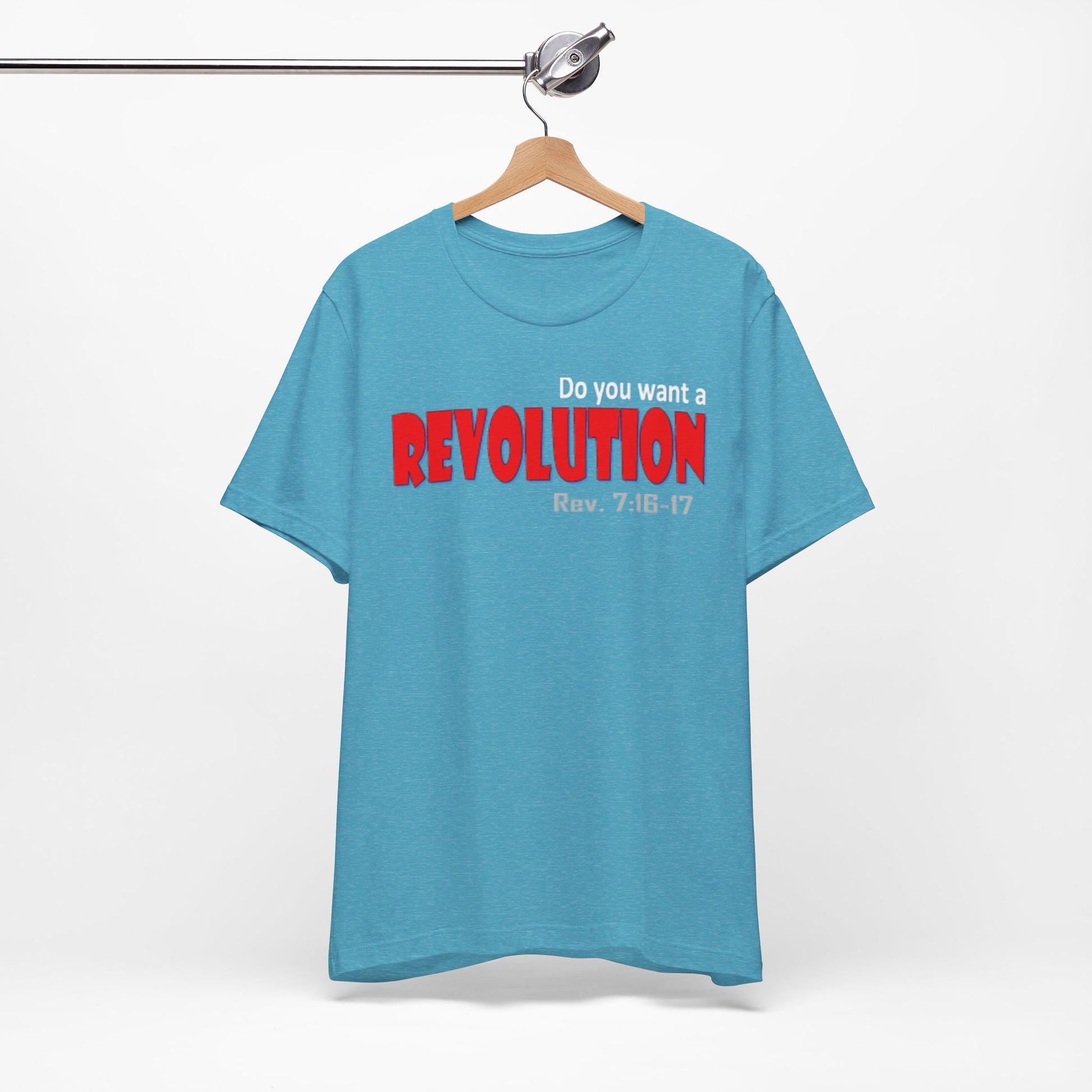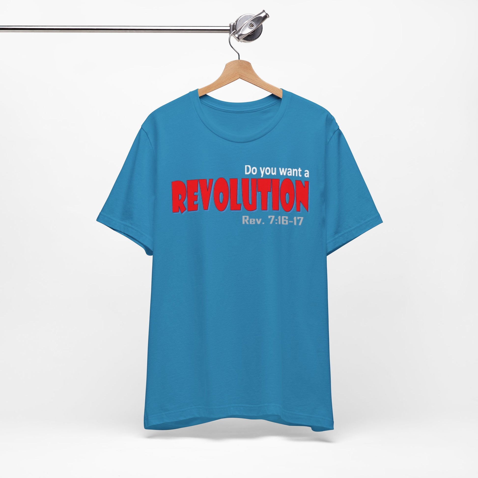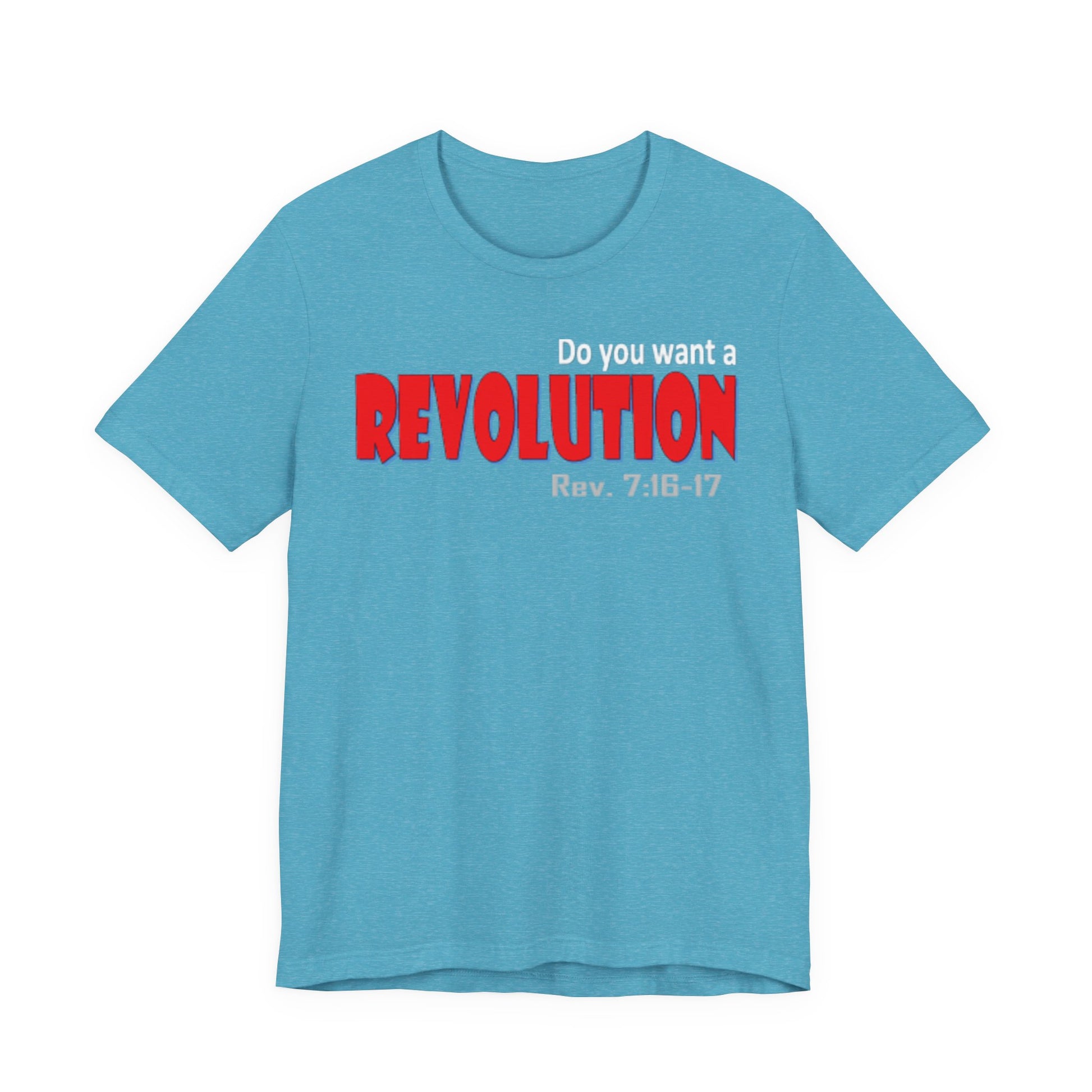 Lightweight, breathable tee with a bold typographic design that reads “REVOLUTION” in striking red. The soft Airlume combed and ring-spun cotton fabric drapes easily and layers well—comfortable for long days on the move or casual meet-ups. Thoughtful construction details (side seams, ribbed collar, shoulder tape) keep the shirt looking sharp after many washes. The design sits across the chest for clear, confident wear; subtle scripture reference under the main word adds a personal, reflective touch for those who connect with it. Ethically produced and REACH certified, this tee pairs well with jeans, jackets, or under a blazer when you want an edge without shouting for attention.