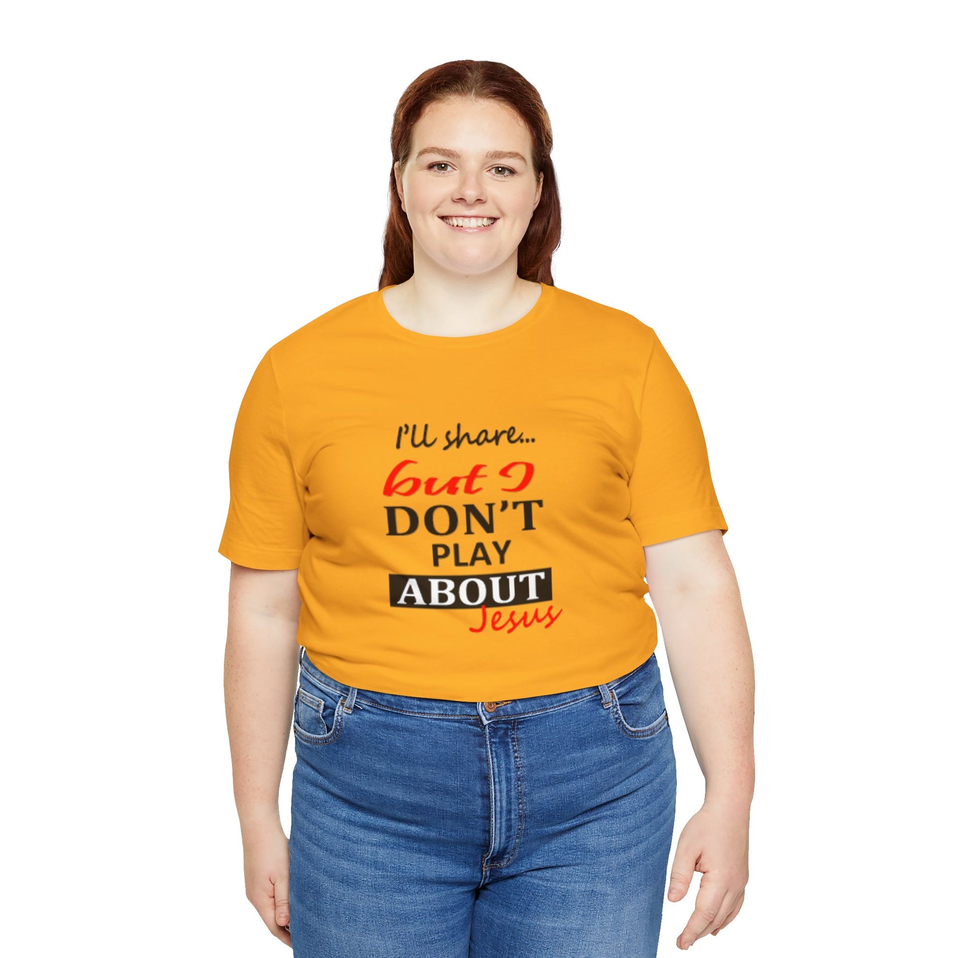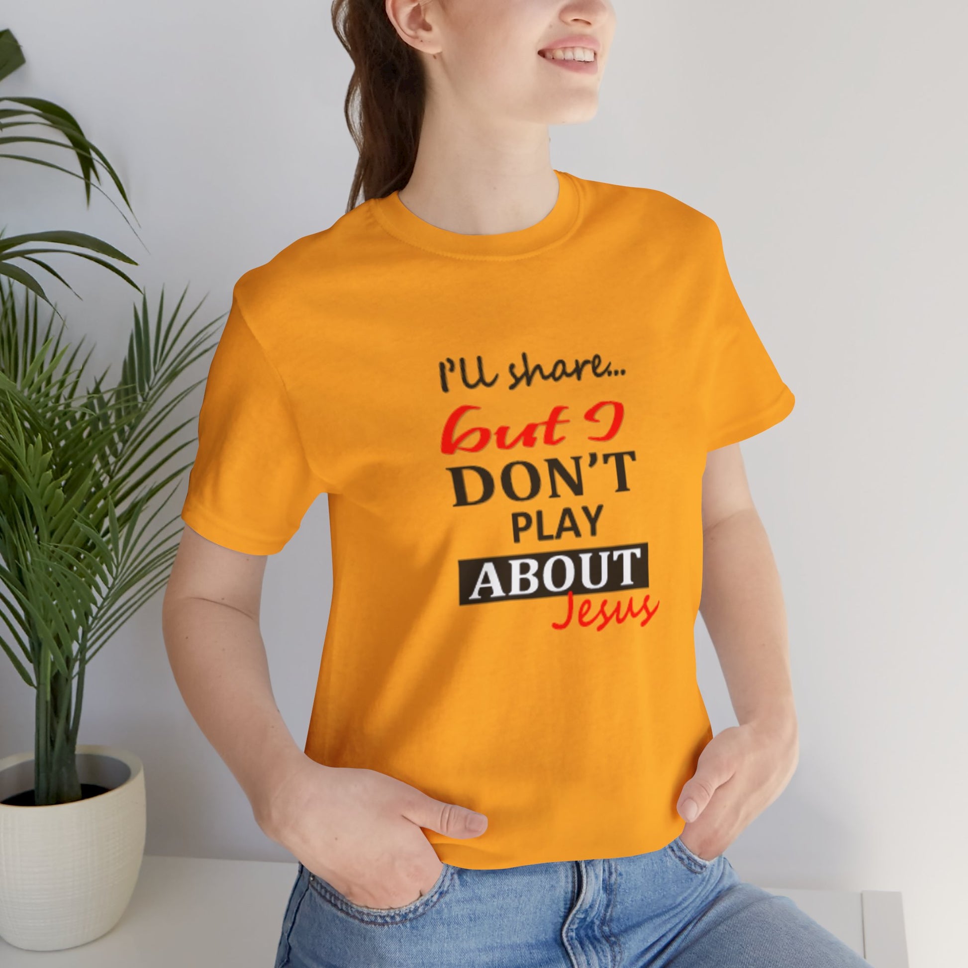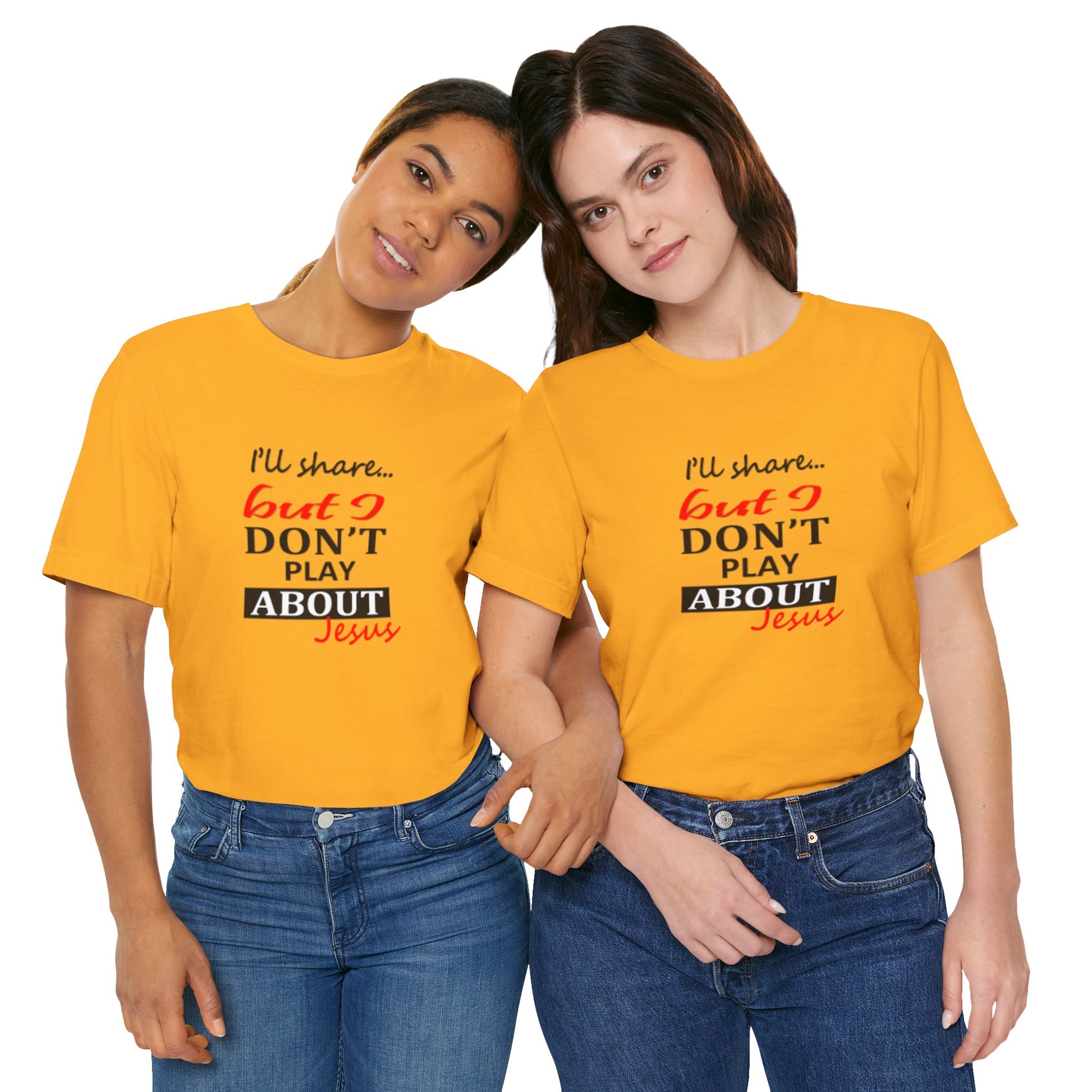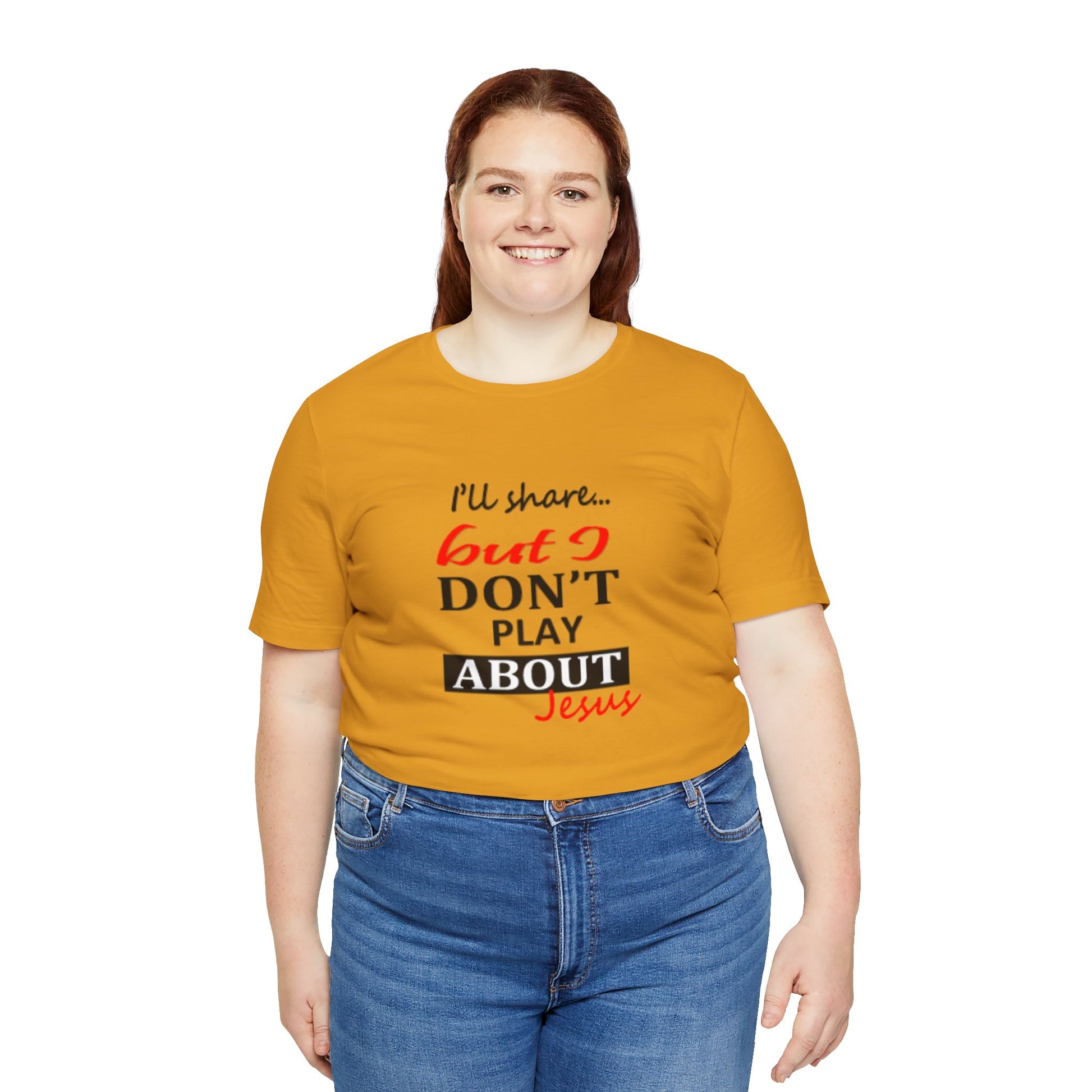 Faith-Inspired Short Sleeve Tee, I'll Share But I Don't Play About Jesus, Christian Gifts, Unisex T-Shirt, Casual Wear, Church Outfits