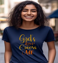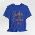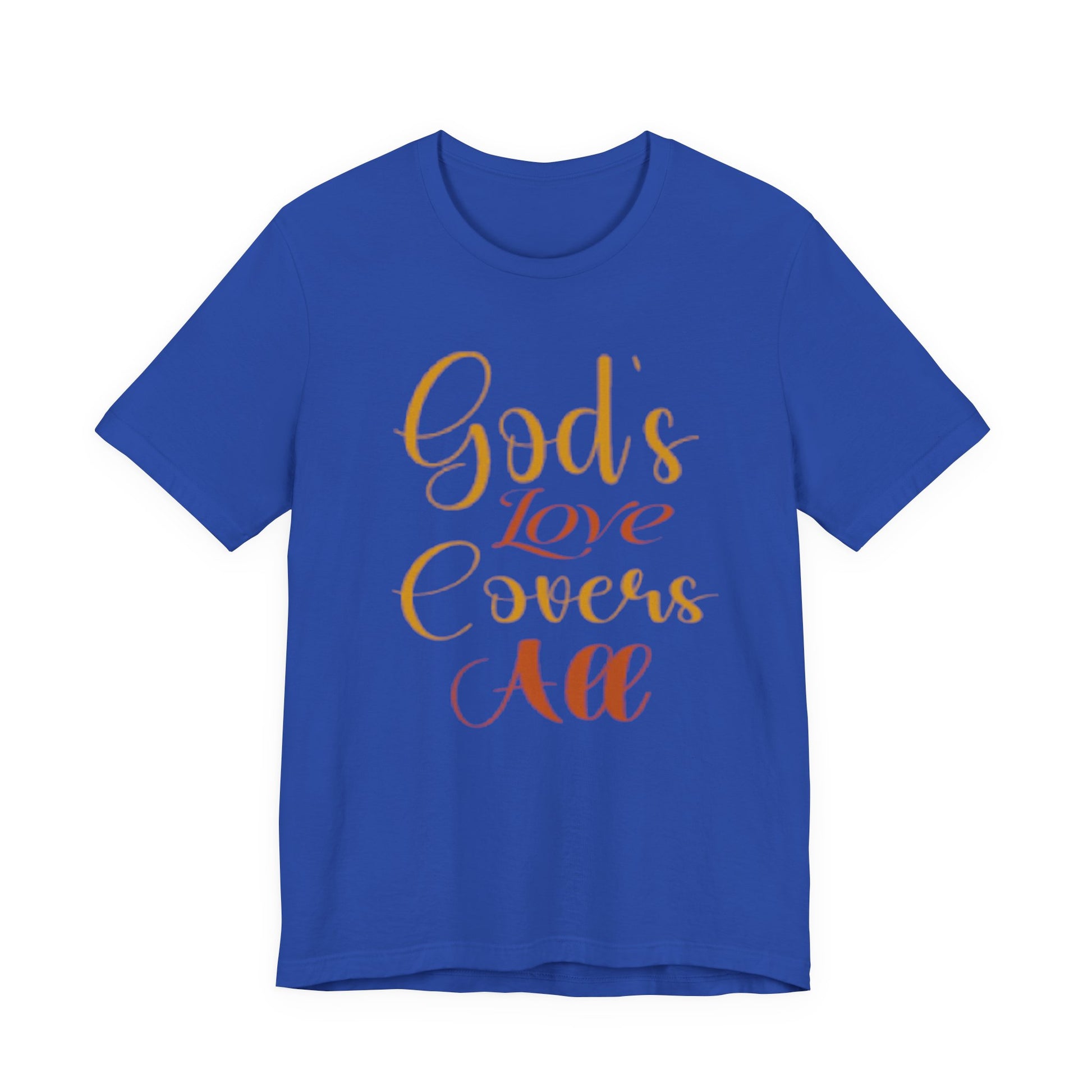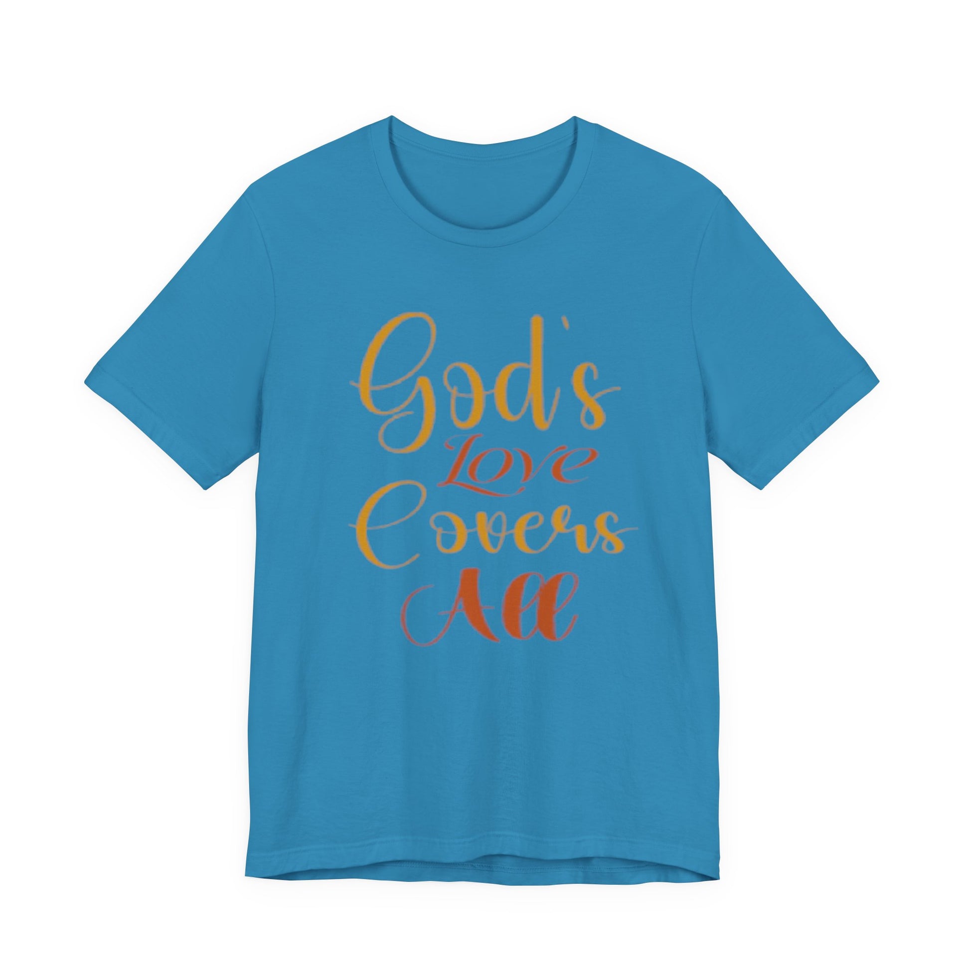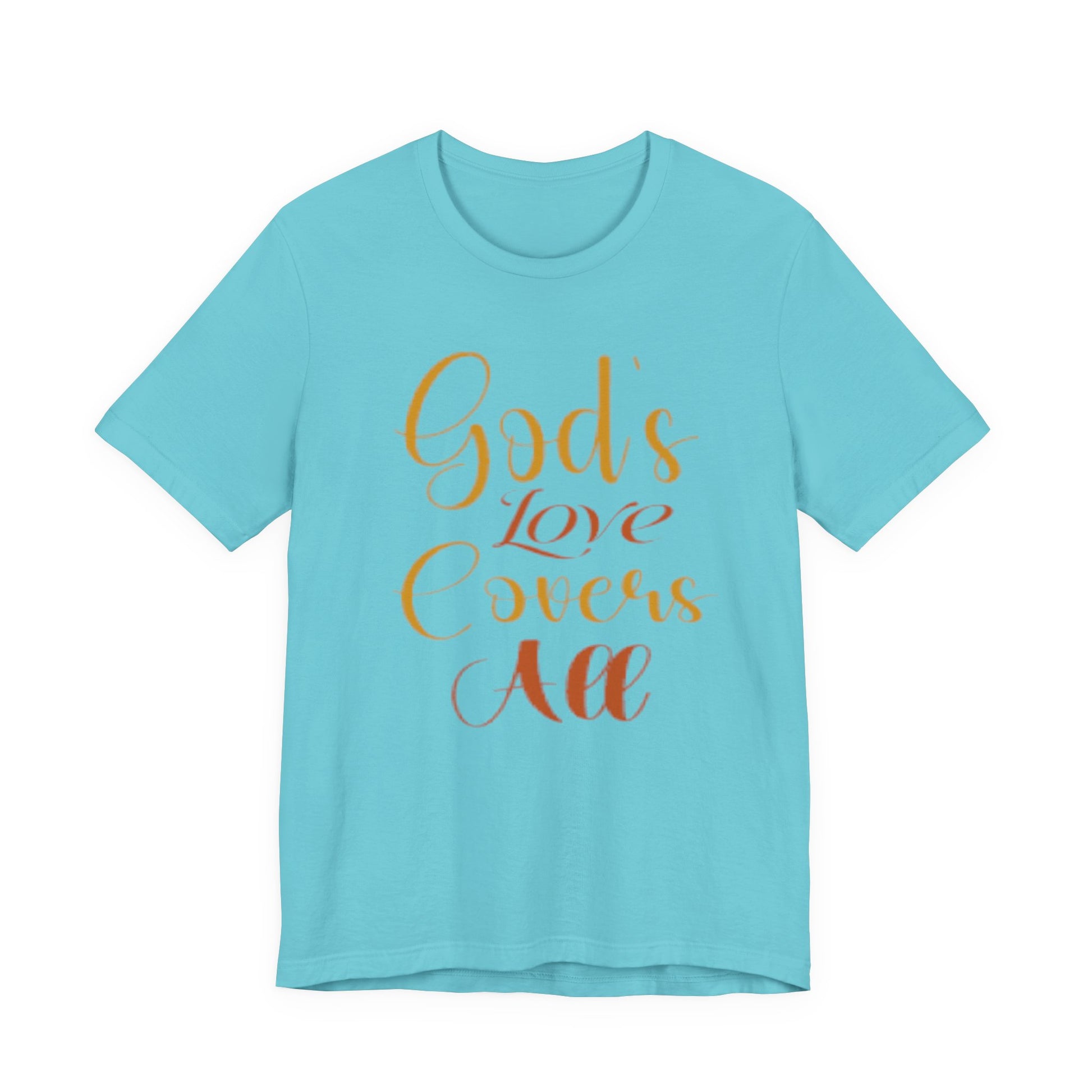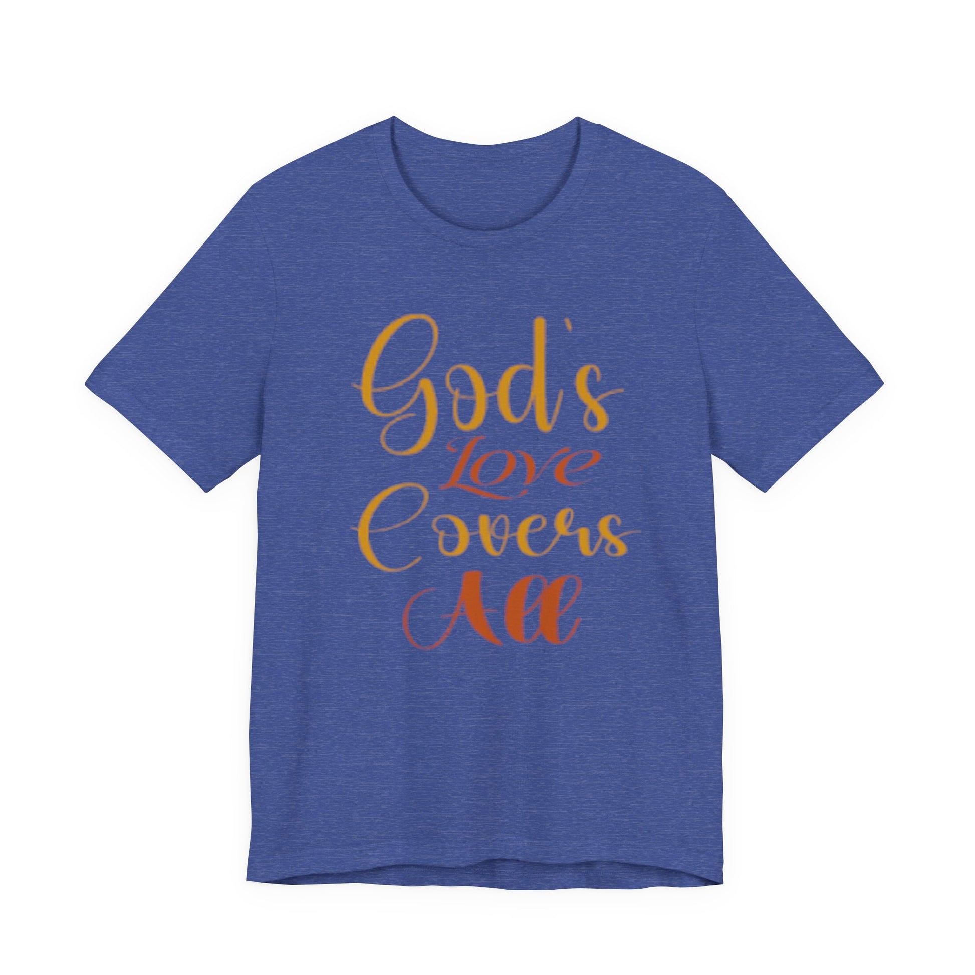 A lightweight, soft cotton tee printed with warm, handwritten lettering that reads “God’s Love Covers All.” It feels like slipping into a quiet morning of faith—calm, honest, and gently reassuring. The subtle, brush-style typography carries a soft metallic sheen against a clean white background, so the message reads like a quiet promise rather than a shout. Wear it to church, small-group nights, volunteer days, or when you need a wearable reminder of grace. The retail cut keeps the silhouette tidy for layering under jackets or pairing with jeans, while the tear-away label and breathable Airlume cotton make it comfortable for long Sundays and everyday living.