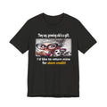 This lightweight crew-neck tee brings playful art and everyday comfort together. The soft, Airlume combed and ring-spun cotton feels breathable against the skin and lays flat for easy layering. A whimsical, cartoon-style portrait printed on the chest adds a dash of quirky personality — a wink of humor that works whether you’re running errands, grabbing coffee, or hanging out at a casual meet-up. The shirt’s retail fit and ribbed collar keep the silhouette neat while side seams and shoulder tape help it hold shape wash after wash. Thoughtfully produced with tear-away labels and ethical manufacturing credentials, it’s a relaxed staple that wears like something you reach for on days when you want your outfit to say “lighthearted” without trying too hard.