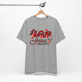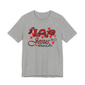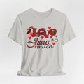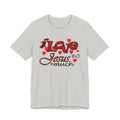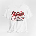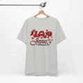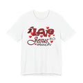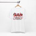 Soft, breathable tee with a heartfelt message. Lightweight Airlume combed and ring-spun cotton keeps this shirt comfortable for long days of worship, volunteering, or casual wear. The front artwork combines playful script and bold lettering surrounded by small hearts — a gentle, joyful way to share faith without shouting. The retail crew neck and clean lines make it easy to layer under a cardigan or wear alone during Sunday gatherings. Built to hold its shape with side seams, shoulder tape, and a ribbed knit collar, it balances durability with a soft hand. Ethically produced and REACH certified, this tee feels as good to wear as its message feels to say.