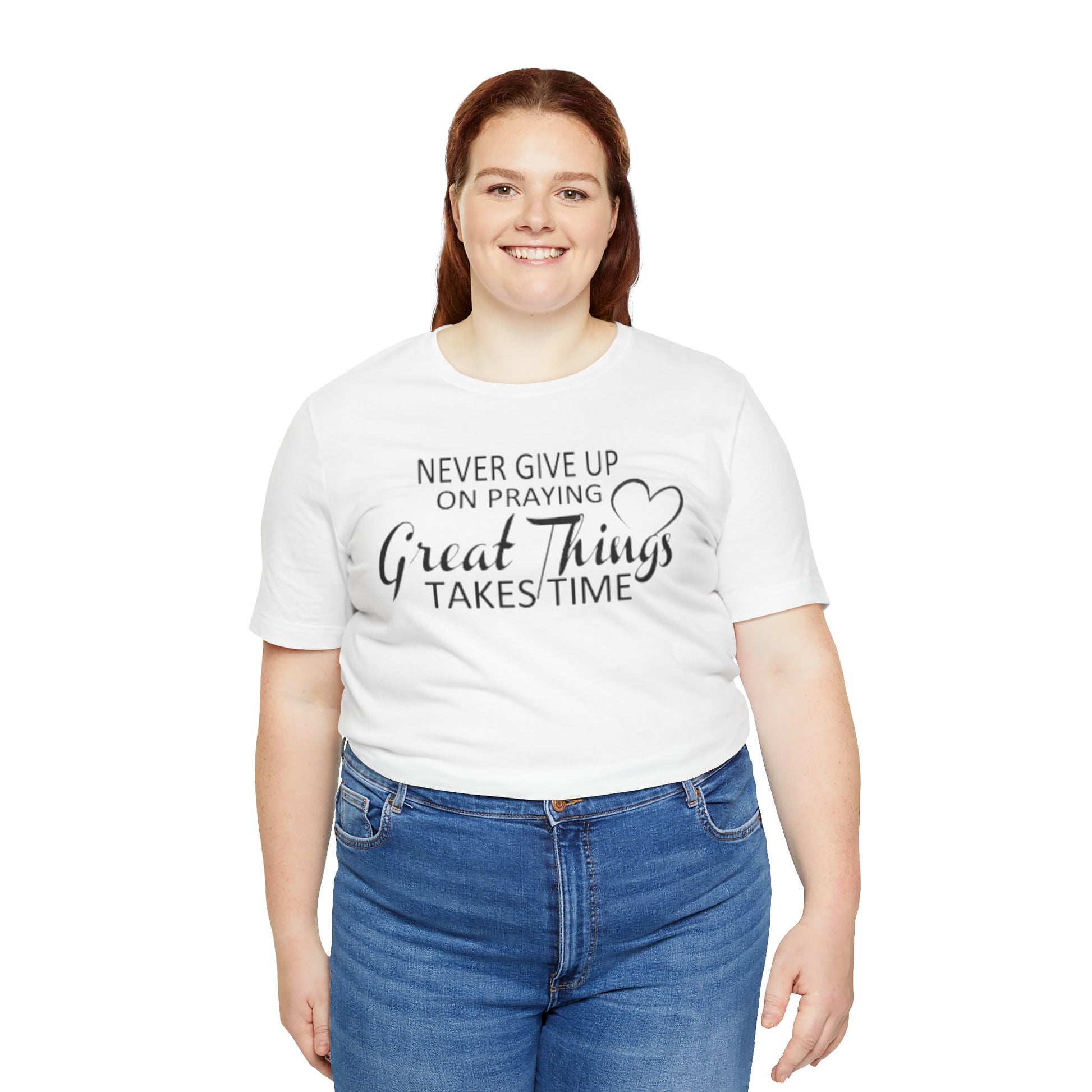 Inspirational Prayer Tee, Unisex Short Sleeve Shirt, Motivational Gift, Faith-Based Apparel, Great Things Take Time Shirt
