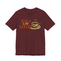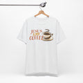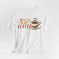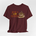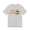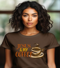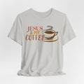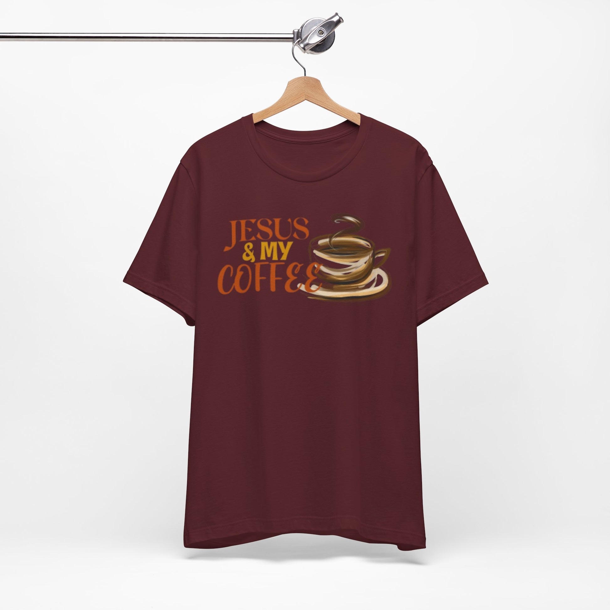Soft, breathable tee with a warm, coffeehouse vibe — this shirt blends quiet faith with the simple ritual of a morning cup. The front artwork layers hand-drawn steam rising from a ceramic mug with warm, textured lettering that reads “Jesus & My Coffee,” giving the design a cozy, lived-in look. Lightweight Airlume combed and ring-spun cotton keeps the fabric airy and comfortable whether you’re journaling at the kitchen table or meeting friends after church. Subtle retail fit and crew neckline keep the silhouette clean and easy to layer under a cardigan or over a favorite pair of jeans. Ethically made blanks and a tear-away label make it gentle on skin and conscience.
