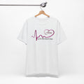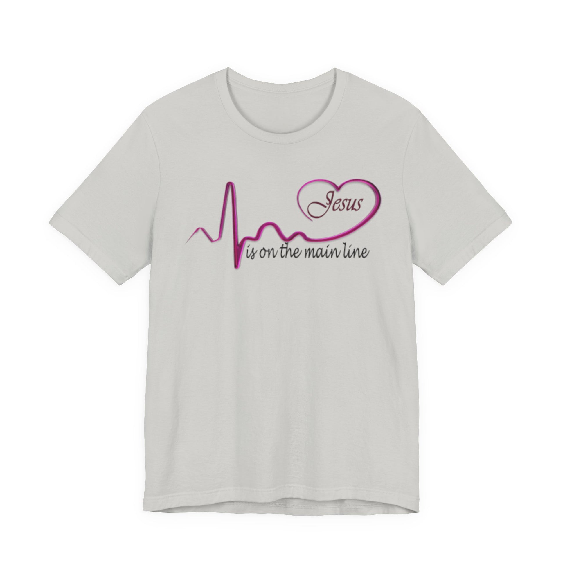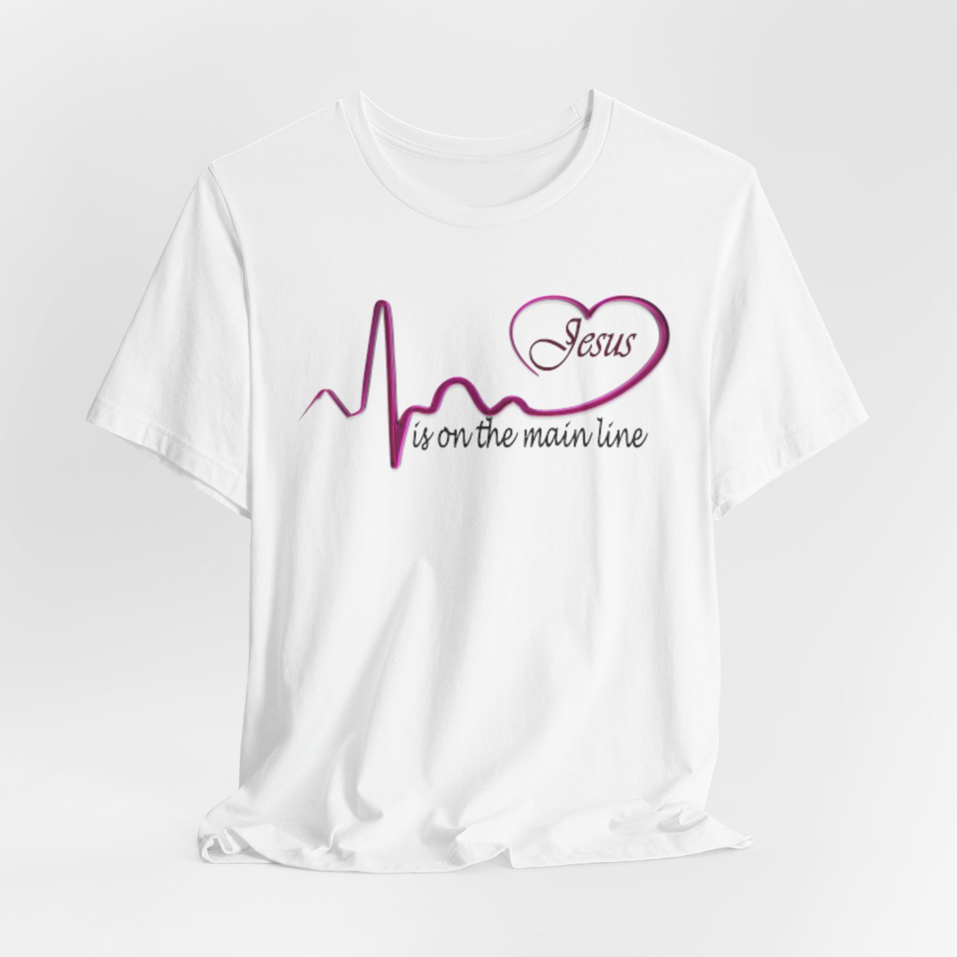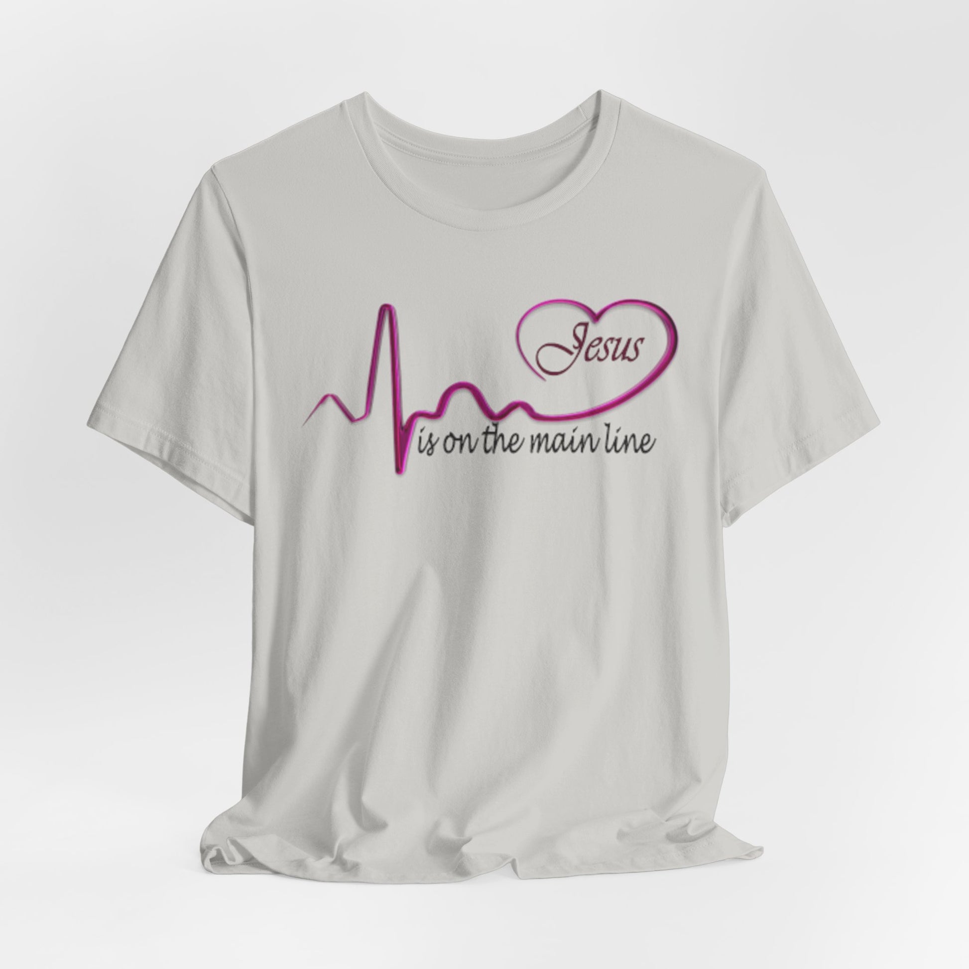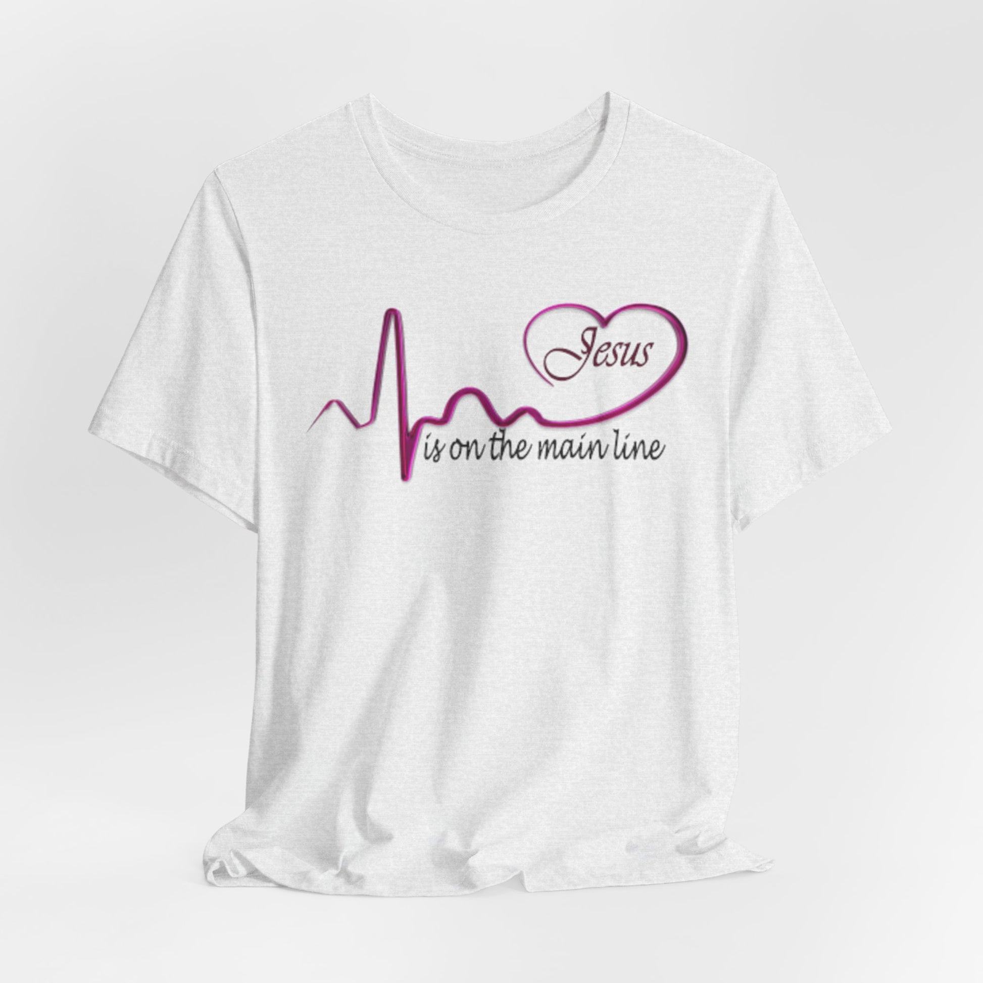 This lightweight crew-neck tee carries a quiet, heartfelt message: a heartbeat line that flows into a heart-shaped script reading "Jesus," with the phrase "is on the main line" beneath. Breathable Airlume combed and ring-spun cotton keeps the shirt soft against skin and easy to layer. The slim retail fit and ribbed collar give a tidy silhouette that works for church gatherings, volunteer days, or everyday wear. Thoughtful construction—side seams, shoulder tape, and a tear-away label—keeps the shirt comfortable and long-lasting. The design reads like a personal reminder of faith, gentle and contemporary rather than flashy.
