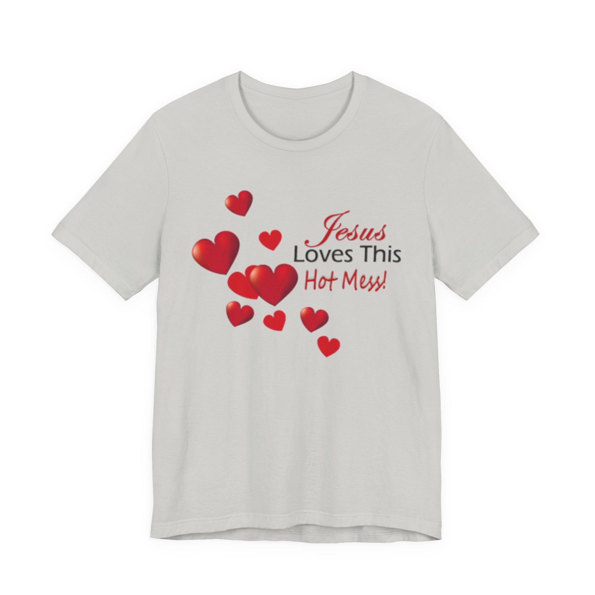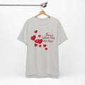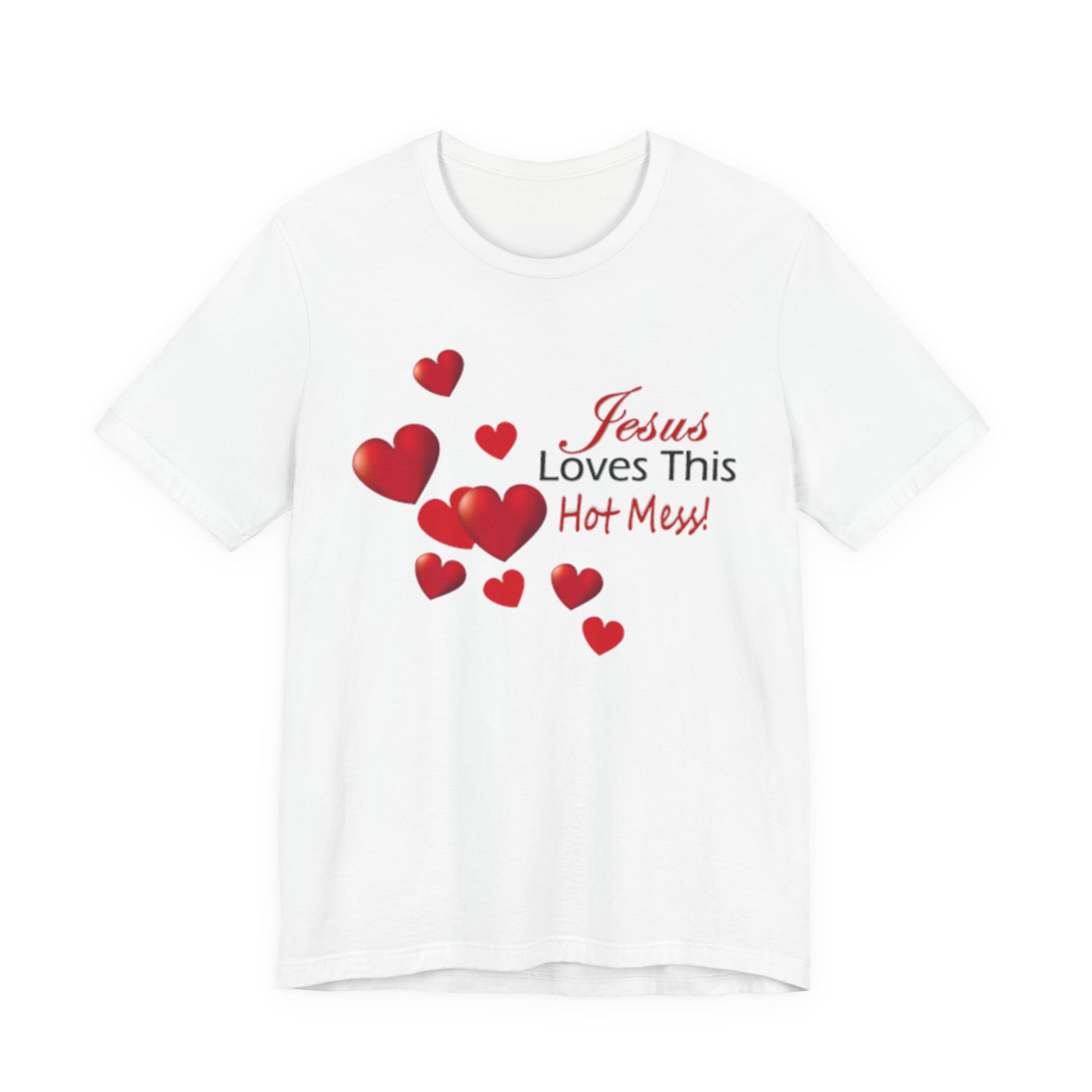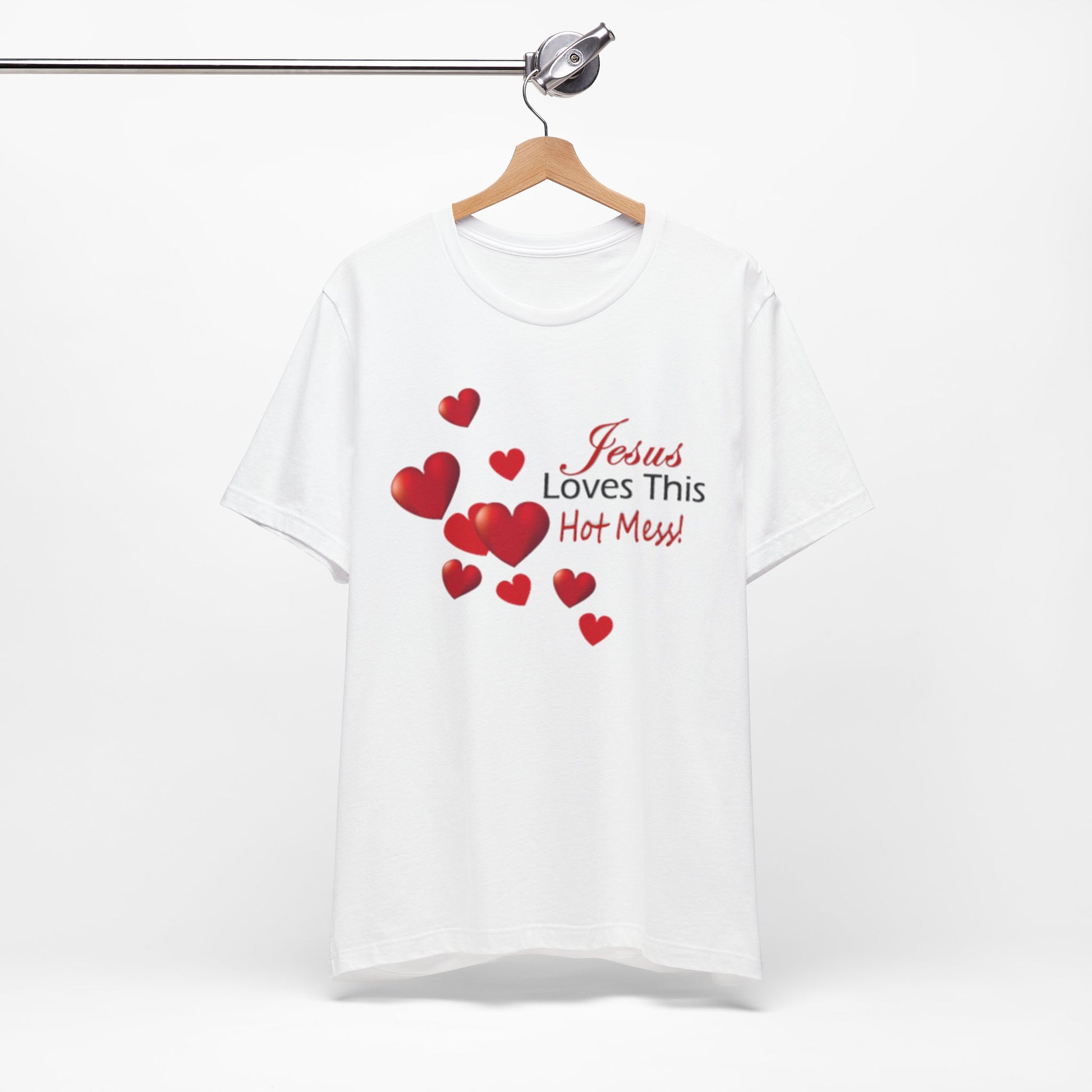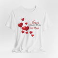 A soft, breathable jersey tee that blends faith-forward charm with everyday comfort. Lightweight Airlume combed and ring-spun cotton drapes easily and feels gentle against the skin, while side seams and shoulder tape help the shirt hold its shape through frequent wear. The front print features scattered red hearts and a warm, playful scripture-inspired message, creating a casual yet heartfelt look. Wear it layered under a denim jacket for Sunday gatherings, or solo for coffee runs, volunteer days, and relaxed evenings with friends. The crew neckline and retail fit keep the silhouette neat and versatile — a simple way to show faith with a lighthearted touch.