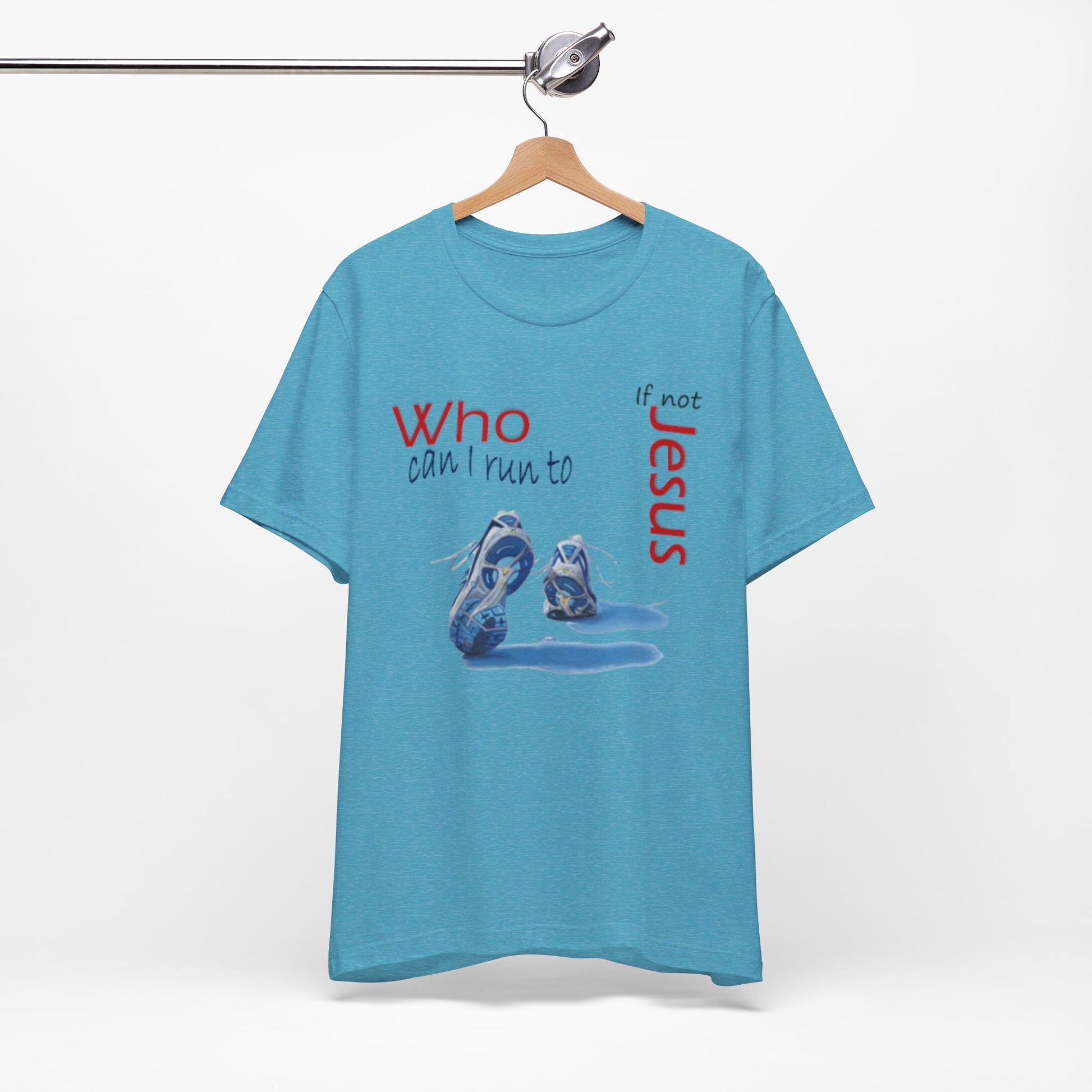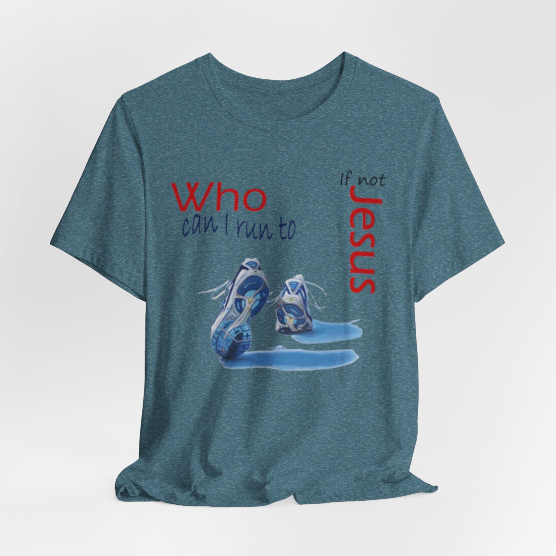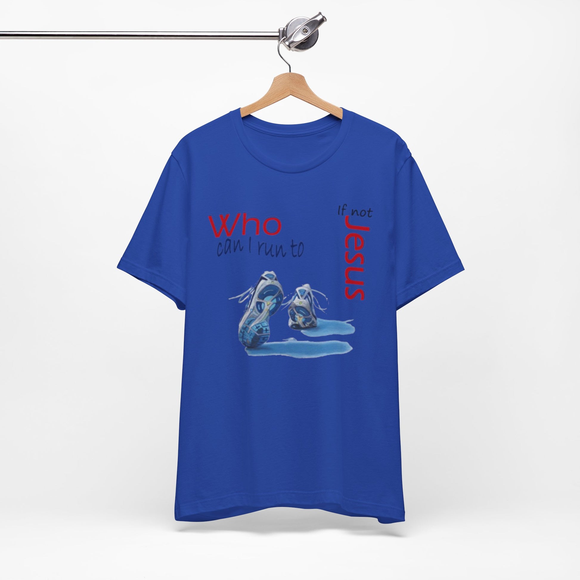 Lightweight, airy, and quietly confident — this tee carries a message without shouting. Soft Airlume combed cotton and a classic crew neck create an easy layer for morning runs, church outings, or relaxed weekend errands. The front artwork pairs a pair of well-worn running shoes with a thoughtful question, laid out in gentle blues and warm red lettering that reads like a personal note. It sits close to the body without clinging thanks to the retail fit and side seams, while ribbed collar and shoulder tape keep the silhouette neat after repeated wear. Breathable and low-profile, it’s the kind of shirt you slip on when you want comfort and a subtle way to share your faith while you move through the day.