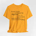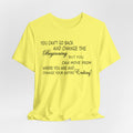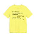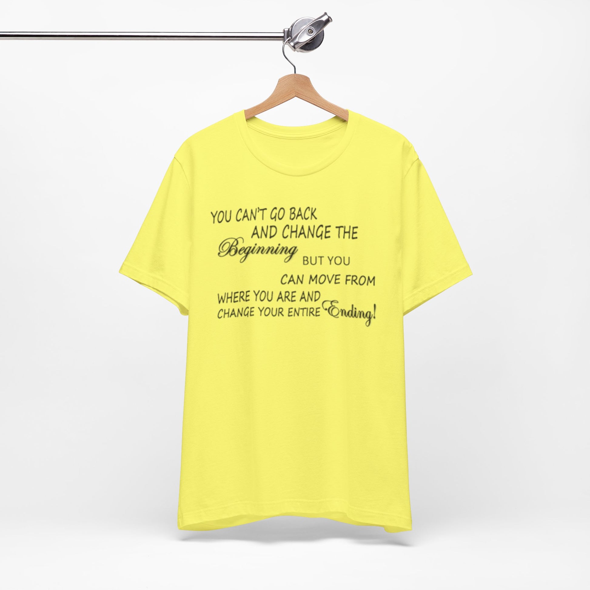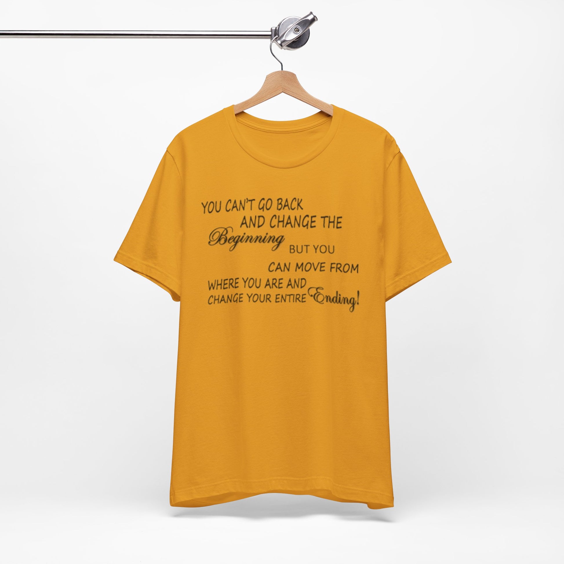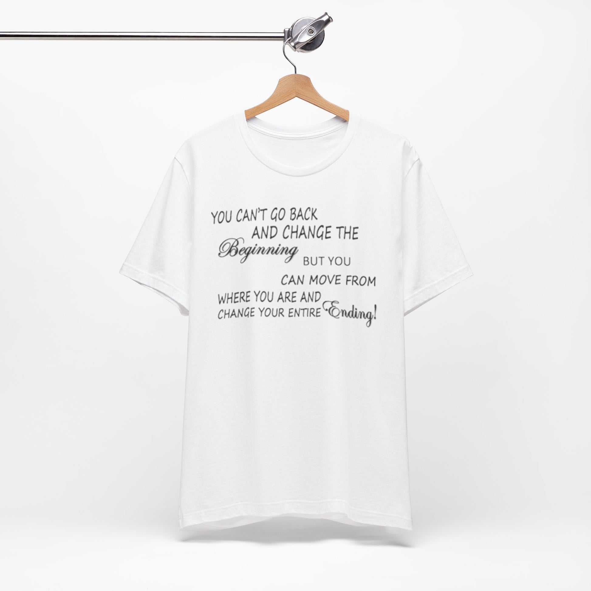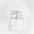 This lightweight tee carries a quiet, hopeful message in soft script—designed for days when you need gentle encouragement rather than loud slogans. The breathable, Airlume combed and ring-spun cotton feels cool against the skin and layers easily under a jacket or cardigan. Subtle seams and ribbed collar give it a clean, lived-in look that suits slow mornings, weekend walks, and evenings spent journaling or talking with friends. Wear it when you’re moving forward, not erasing the past—when a calm reminder is enough to steady your next step.